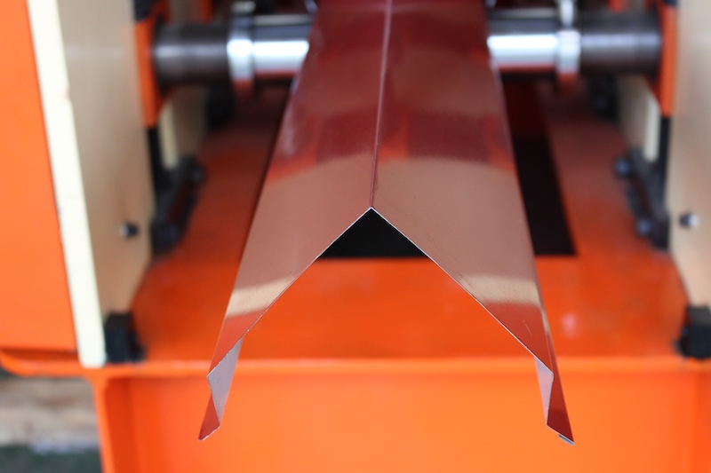 Ameco Steel Roof Ridge Cap Roll Forming Machine roll-forms Ridge Cap for Metal Roofing Tile, Three Bend Ridge Cap, Peak Ridge Cap, Hip Cap or Flat Ridge Roof Flashing with custom profiles drawn by customers.